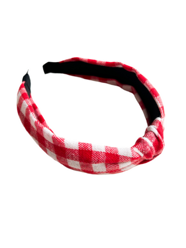Red + White Flannel Headband
