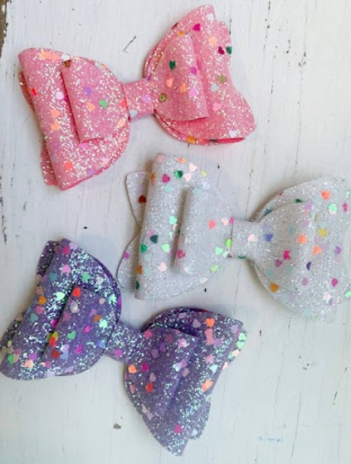 • Load image into Gallery viewer, Lilac Sparkle Conversation Heart Bow