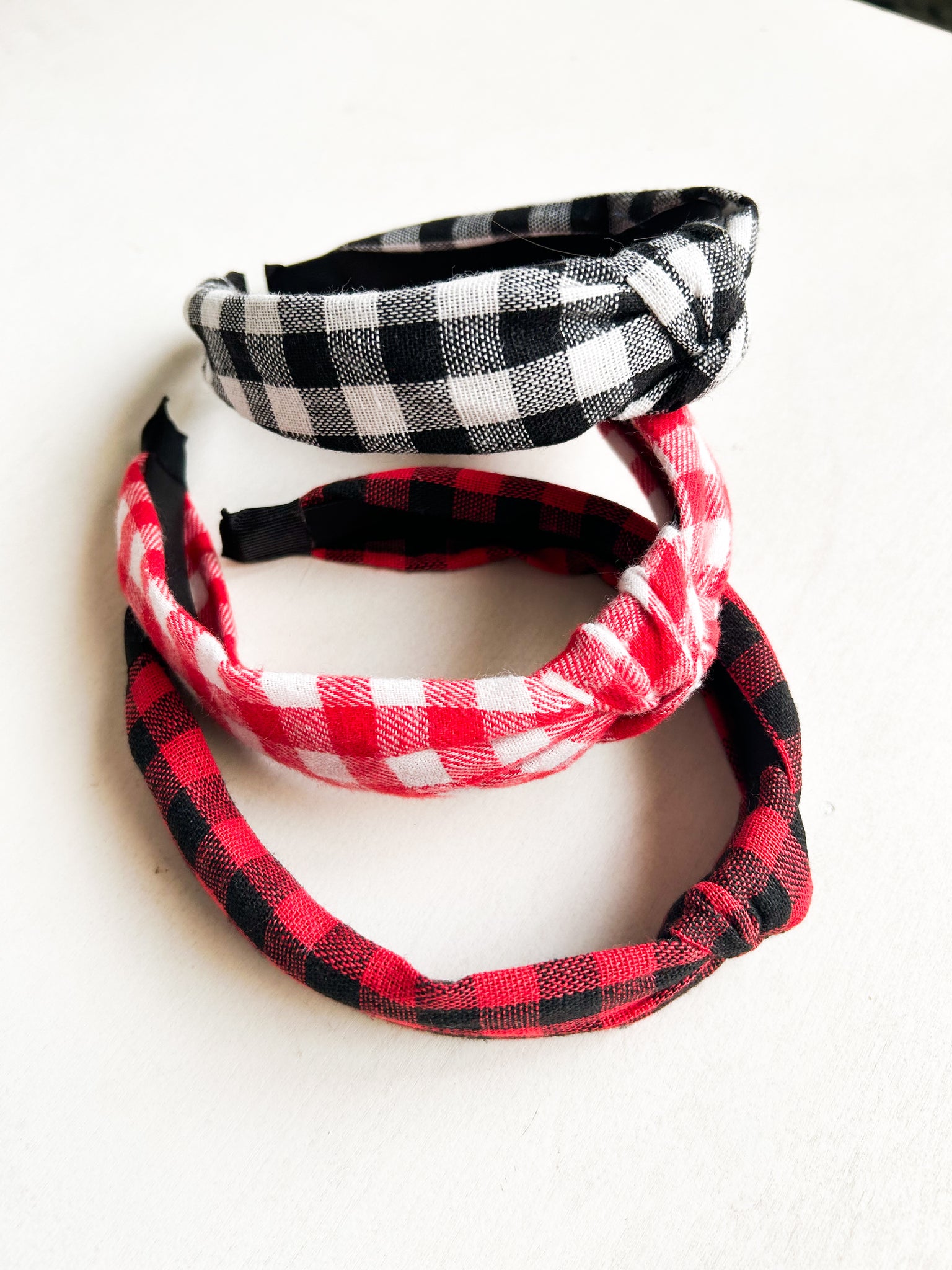 Red + White Flannel Headband